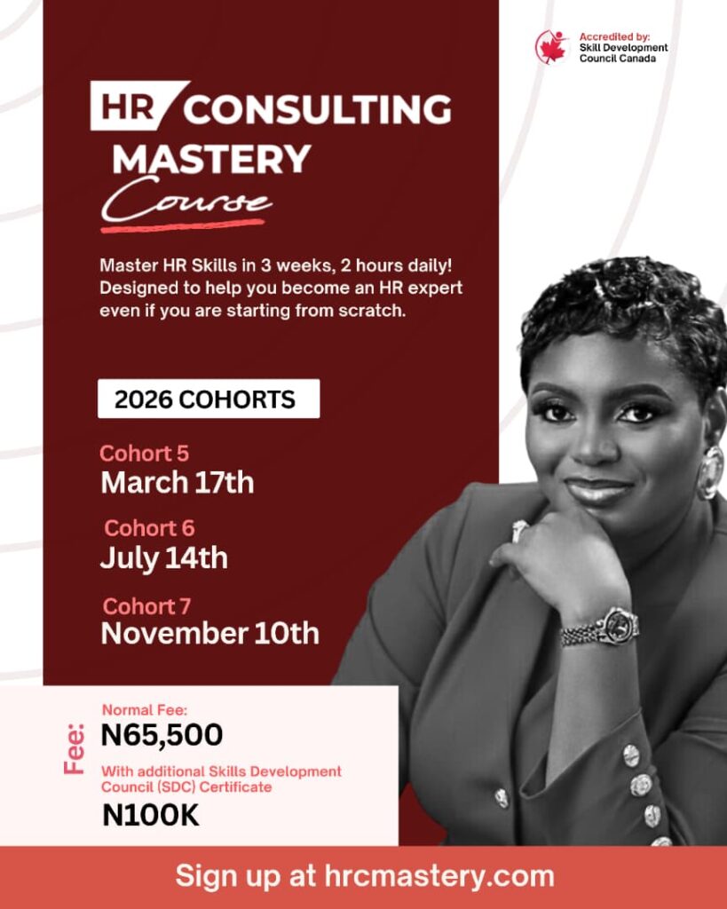 WATCH THE MINI COURSE NOW START EARNING FROM YOUR HR SKILL: LAND YOUR FIRST PAYINGCLIENT AS AN HR CONSULTANT WITH RECRUITMENT. ENROLL NOW AFTER YOU WATCH THE FREE TRAINING ABOVE, YOU CAN REACH US USING ANY OF THE 3 МЕТНОDS BELOW Click here to chat on Whatsapp to sign up for the HR Consulting Mastery Course Click here to read more about the HR Consulting Mastery Course